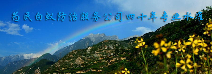 •  自信源于實力,品質(zhì)造就品牌。當陽市為民白蟻防治有限公司將一如既往利用精湛技術(shù)的優(yōu)勢,依托各界成功客戶的強大支持,以“為民除害、誠信高效、服務一流”為企業(yè)宗旨,積極吸取國內(nèi)外的先進技術(shù)和管理,全力以赴為人民的安居樂業(yè)做貢獻,以自信驕傲的姿態(tài),成為湖北地區(qū)白蟻防治的一朵奇葩!